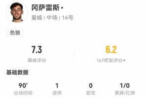 體育資訊2月20日訊 曼城在本輪歐冠次回合1-3不敵皇馬,尼科-岡薩雷斯本場(chǎng)數(shù)據(jù)如下: