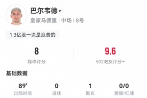 體育資訊2月20日訊 歐冠淘汰賽附加賽次回合,姆巴佩上演帽子戲法,皇馬3-1總比分6-3曼城晉級(jí)16強(qiáng)!此役再次客串右后衛(wèi)的巴爾韋德發(fā)揮依舊出色,球員全場(chǎng)重點(diǎn)數(shù)據(jù)如下↓