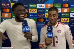 體育資訊2月20日訊 歐冠淘汰賽附加賽次回合比賽中,拜仁1-1凱爾特人,戴維斯打進絕平球,奧利塞送出關(guān)鍵傳中。賽后,兩人一起接受了CBS的連線采訪,一向性格內(nèi)斂的奧利塞遭到了自己前法國U21主帥亨利的瘋狂調(diào)侃。