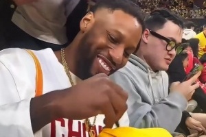 本場比賽,威姆斯身穿徐杰的中國國家隊2號球衣現(xiàn)場觀戰(zhàn),并且還為球迷簽名,他寫道:“必須得來支持我的兄弟們?!?/p>
