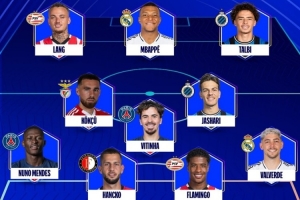 體育資訊2月21日訊 本周歐冠比賽結(jié)束,歐足聯(lián)官方宣布了本周歐冠最佳陣容,姆巴佩領(lǐng)銜。