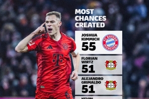 體育資訊2月21日訊 德甲官方統(tǒng)計(jì)了本賽季球員創(chuàng)造機(jī)會(huì)的次數(shù),并列出榜單,基米希55次居首,維爾茨、格里馬爾多51次第二。