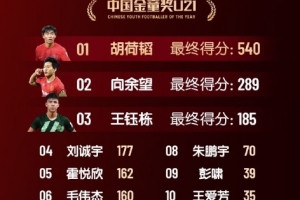 體育資訊2月21日訊 足球周刊今日公布中國(guó)金球獎(jiǎng)具體的相關(guān)得分,其中金童獎(jiǎng)具體得分如下: