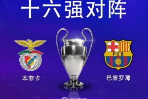 體育資訊2月21日訊 歐冠16強抽簽結(jié)果出爐,巴薩將先客后主對陣本菲卡。