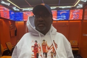 昨天打完比賽在更衣室碰到了洛夫頓的爸爸,簡單聊了幾句,他表示一家人都非常喜歡上海這座城市,也很感謝這么多球迷對洛夫頓的喜愛。洛夫頓爸爸真是一個非常非常nice的人,他非常為自己的兒子驕傲,主動介紹說身上這件衛(wèi)衣是自己找地方去印制的,特意穿著來現(xiàn)場支持上海隊。