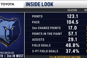 賽前轉(zhuǎn)播方曬出一組灰熊本賽季的場均數(shù)據(jù):