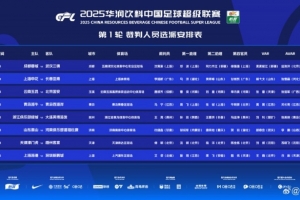 體育資訊2月22日訊 中國(guó)足協(xié)公布了新賽季中超首輪裁判人員選派名單,馬寧將執(zhí)法海牛與西海岸的青島德比。