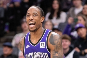 上半場比拼,德羅贊狀態(tài)神勇。他出戰(zhàn)20分鐘,10投7中,三分6中3,罰球7中7,得24分1板1助。