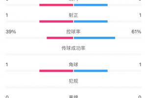 體育資訊02月22日訊 國青半場暫0-0沙特,半場數(shù)據(jù)如圖。國青射門5腳與對手相同,控球率61%占據(jù)優(yōu)勢。