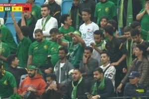 主裁做出判罰后,球門后的沙特球迷非常不滿,手比劃著示意看VAR。
