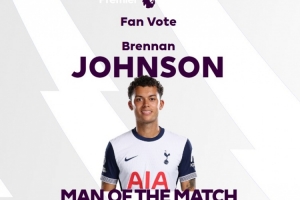 本場比賽布倫南-約翰遜梅開二度,賽后他也當(dāng)選英超官方球迷票選全場最佳球員。
