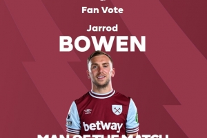 本場(chǎng)比賽西漢姆球員鮑文打進(jìn)唯一進(jìn)球,賽后他也當(dāng)選英超官方球迷票選全場(chǎng)最佳球員。