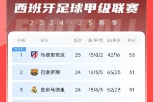 體育資訊2月23日訊?西甲第25輪,馬競3-0輕取瓦倫,暫登榜首。