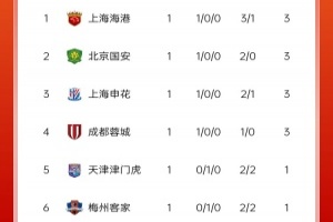 體育資訊2月23日訊 中超首輪全部比賽戰(zhàn)罷,新賽季第一輪排名出爐。