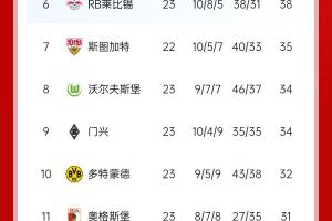 積分榜最新情況,拜仁8分優(yōu)勢領(lǐng)跑。最近9輪比賽,拜仁豪取8勝1平。