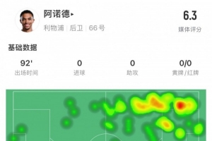 體育資訊2月24日訊 本輪英超比賽,曼城對陣利物浦,阿諾德本場數(shù)據(jù):