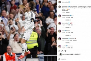 賽后莫德里奇也在個人社媒曬出慶祝進球的照片,配文寫道:“非常高興能夠幫助球隊全取三分,也感謝球迷們在伯納烏球場營造出的熱烈氛圍,讓我們一同前進!”
