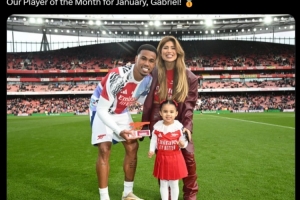 體育資訊2月24日訊 阿森納官方消息,加布里埃爾當(dāng)選球隊1月份最佳球員。球隊官推也曬出加布里埃爾與家人的合影,為其送上祝賀。