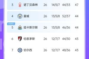 目前排名第三的諾丁漢森林積47分,排第八的維拉僅落后5分,鹿死誰手很難預(yù)料。
