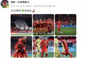 徐新在社媒曬出2025賽季中超首輪比賽照片,他配文寫道:“2025賽季??新起航?? ???”