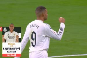 體育資訊12月23日訊 在剛剛結(jié)束的西甲第18輪比賽中,皇馬4-2大勝塞維利亞。賽后,傳射建功的姆巴佩當(dāng)選全場最佳球員。