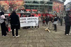 體育資訊2月25日訊 《每日郵報》報道,在阿森納和西漢姆的比賽前,有阿森納球迷在球場外抗議強奸犯和性暴力。