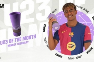 體育資訊2月25日訊 西甲官網(wǎng)公布了2月份西甲最佳U23球員的評選結(jié)果,亞馬爾順利當選。