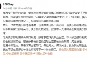 體育資訊2月26日訊 女乙球員白時(shí)瀅在社媒透露,山西太原亞海足球俱樂部在其合同到期的情況下,拒絕出具自由身證明。