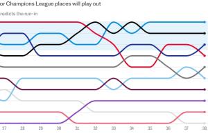假設(shè)利物浦與阿森納分獲冠亞軍,那么就有9支球隊競爭剩余三個歐冠席位,如果熱刺后程發(fā)力,那么將會有10支球隊進行競爭。