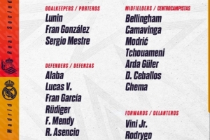 前鋒:維尼修斯、羅德里戈、恩德里克、卜拉欣-迪亞斯、貢薩洛-加西亞