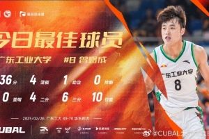 今日的MVP給到廣東工業(yè)大學8號曾煜成,在東南賽區(qū)的揭幕戰(zhàn)中對陣華東師大拿下36分4籃板1助攻的成績,成功率隊拿下首勝!