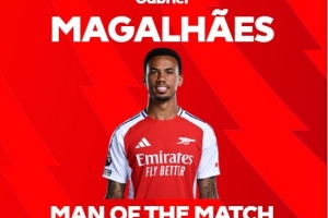 本場(chǎng)比賽,加布里埃爾的傳球成功率達(dá)到了89.3%,賽后他被英超評(píng)為全場(chǎng)最佳。