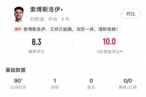 體育資訊2月27日訊 本輪英超比賽,利物浦2-0戰(zhàn)勝紐卡,索博斯洛伊本場數(shù)據(jù):