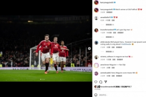 在下半場曼聯(lián)10人作戰(zhàn)的不利局面下,馬奎爾打進(jìn)關(guān)鍵進(jìn)球。賽后馬奎爾也在個(gè)人社媒曬出本場慶祝照,配文寫道:“在老特拉福德球場打進(jìn)制勝進(jìn)球!”