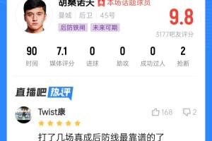英超第27輪,熱刺主場0-1不敵曼城,即將21歲的胡桑諾夫打滿全場,獲得吧友的一致好評,吧友給他打出9.8分。