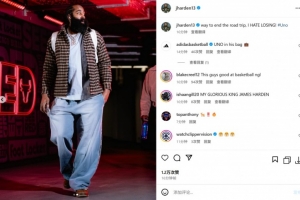 賽后哈登更新INS曬照并寫(xiě)道:“結(jié)束客場(chǎng)之旅的正確方式,我討厭輸球!”