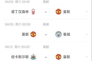 曼聯(lián)未來5輪英超的賽程: