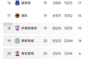不過(guò)值得注意的是,埃弗頓的排名僅僅上升了一位,同期三支升班馬伊普斯維奇、萊斯特城和南安普頓分別只拿到2分、3分和3分。