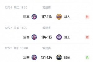 體育資訊12月29日訊 NBA常規(guī)賽,活塞121-134輸給掘金,3連勝被終結(jié)。