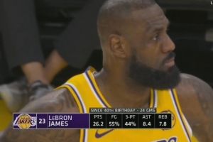 轉(zhuǎn)播方曬出數(shù)據(jù),詹姆斯在40歲生日后的24場(chǎng)比賽中,場(chǎng)均砍下26.2分8.4助攻7.8籃板,投籃命中率55%,三分命中率44%。