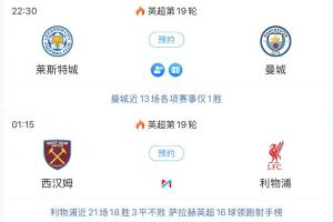 體育資訊12月29日訊 英超第19輪開打,22:30曼城客戰(zhàn)萊斯特城,1:15利物浦客戰(zhàn)西漢姆。