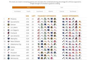 西部剩余賽程難度(最前面數(shù)字是賽程難度在聯(lián)盟所有球隊中的排名)