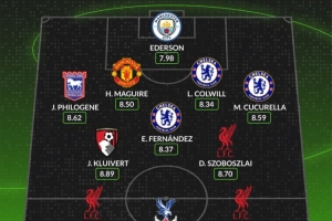 后衛(wèi):菲洛金(伊普斯維奇,8.62分)、馬奎爾(曼聯(lián),8.50分)、科爾維爾(切爾西,8.34分)、庫(kù)庫(kù)雷利亞(切爾西,8.59分)