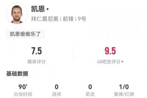 下一篇: 科曼數(shù)據(jù):2射2正1進(jìn)球,傳球成功率100%,1次關(guān)鍵傳球,評分7.7