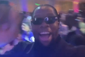 視頻當(dāng)中,烏布雷指著臺下的亞布塞萊說道:“向亞布塞萊致敬,人見人愛的小熊?!眮啿既R隨后拿著攝像機第一視角秀舞姿。