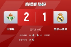 體育資訊3月2日訊 本輪西甲,貝蒂斯2-1戰(zhàn)勝皇馬。