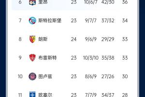 巴黎先賽一場領(lǐng)先第二名馬賽16分,尼斯、摩納哥、里爾分別位居3-5名。