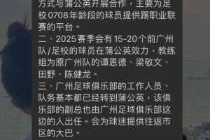 網(wǎng)傳截圖提到,新賽季會有15-20個前廣州隊或恒大足校的球員效力廣州蒲公英。