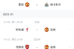 體育資訊12月23日訊 曼聯(lián)0-3完敗伯恩茅斯,聯(lián)賽近4輪1勝3負(fù)。接下來(lái)曼聯(lián)的比賽任務(wù)在國(guó)內(nèi)賽場(chǎng),聯(lián)賽先對(duì)陣?yán)顷?duì)、紐卡,接著就是雙紅會(huì)。1月12日,曼聯(lián)足總杯對(duì)陣阿森納,隨后是聯(lián)賽對(duì)陣南安普頓和布萊頓。