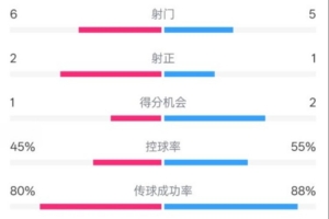 半場比賽數(shù)據如下(曼聯(lián)在前):